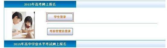 1.“2015年高考网上报名”区域中点击学生登录;(图1)