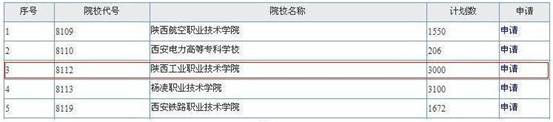 4.序号3,院校代码8112,院校名称陕西工业职业技术学院,点击“申请”;(图4)