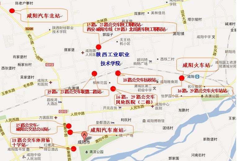西安火车站下车的同学及家长可在尚德门汽车站乘坐西安至咸阳北线班车(39路)到陕西工院北门下车。